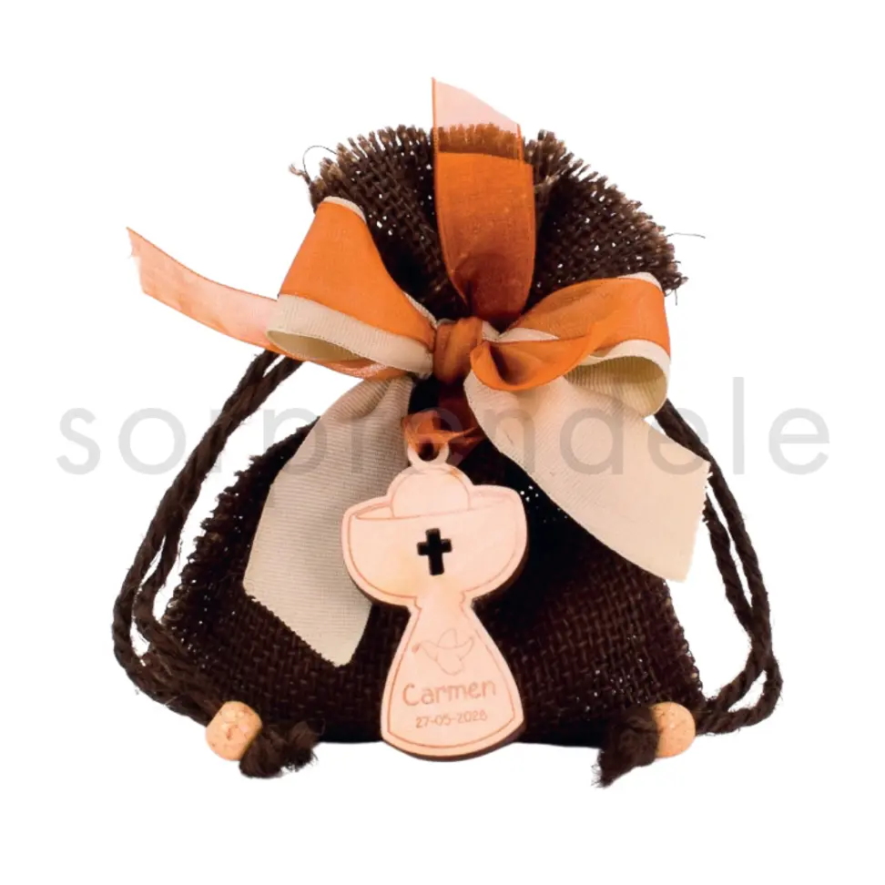 - Diseño: bolsita decorativa con colgante cáliz personalizado