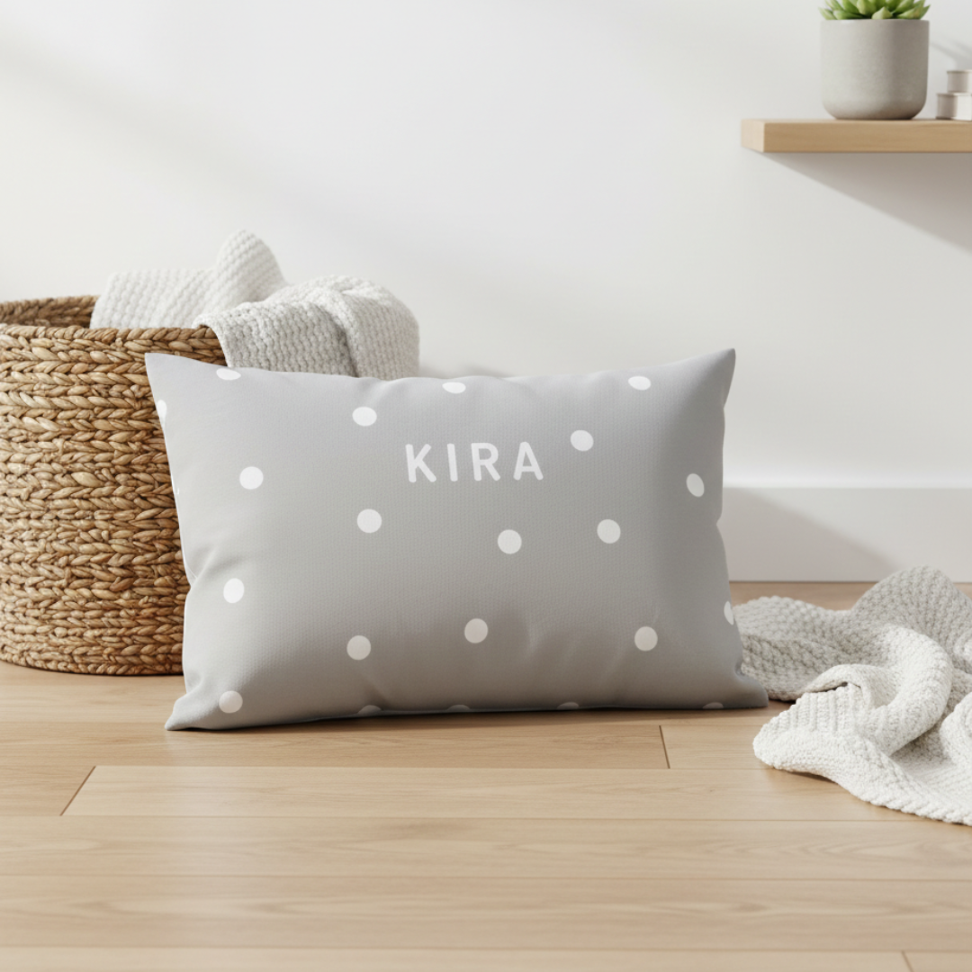 Se personaliza todo el exterior, incluidos los laterales, consiguiendo así una personalización completa y bonita con un acabado profesional. La parte trasera tiene tejido de color negro y cremallera para que puedas extraer la funda fácilmente y meterla cómodamente en la lavadora.