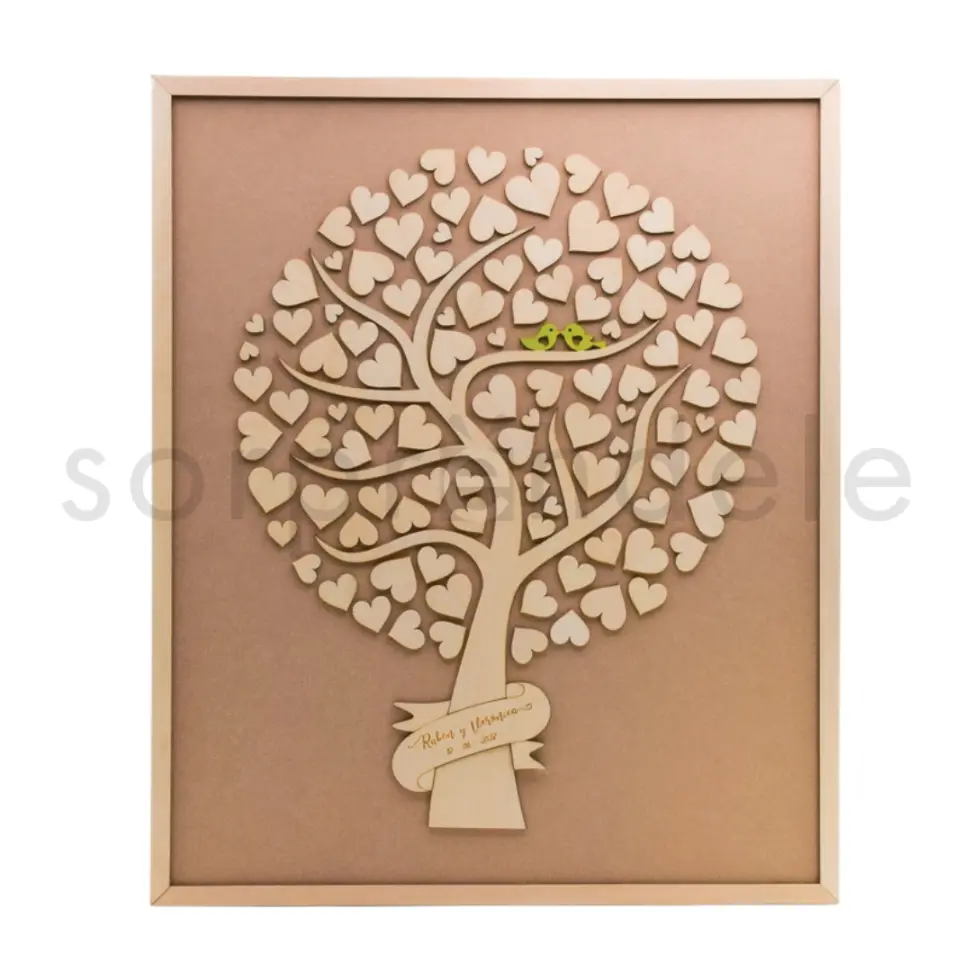 Este cuadro árbol de deseos combina diseño decorativo y valor sentimental, convirtiéndose en una alternativa elegante al libro de firmas tradicional. Los invitados podrán dejar sus dedicatorias en el árbol, creando una pieza única llena de recuerdos y emociones.