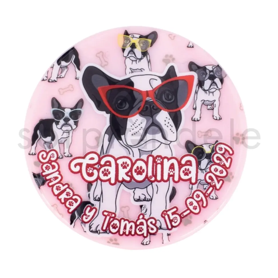Gracias a su formato compacto, el espejo doble perros personalizado novios y fecha es muy práctico para llevar en el bolso, ofreciendo funcionalidad sin renunciar a un diseño atractivo y personalizado.