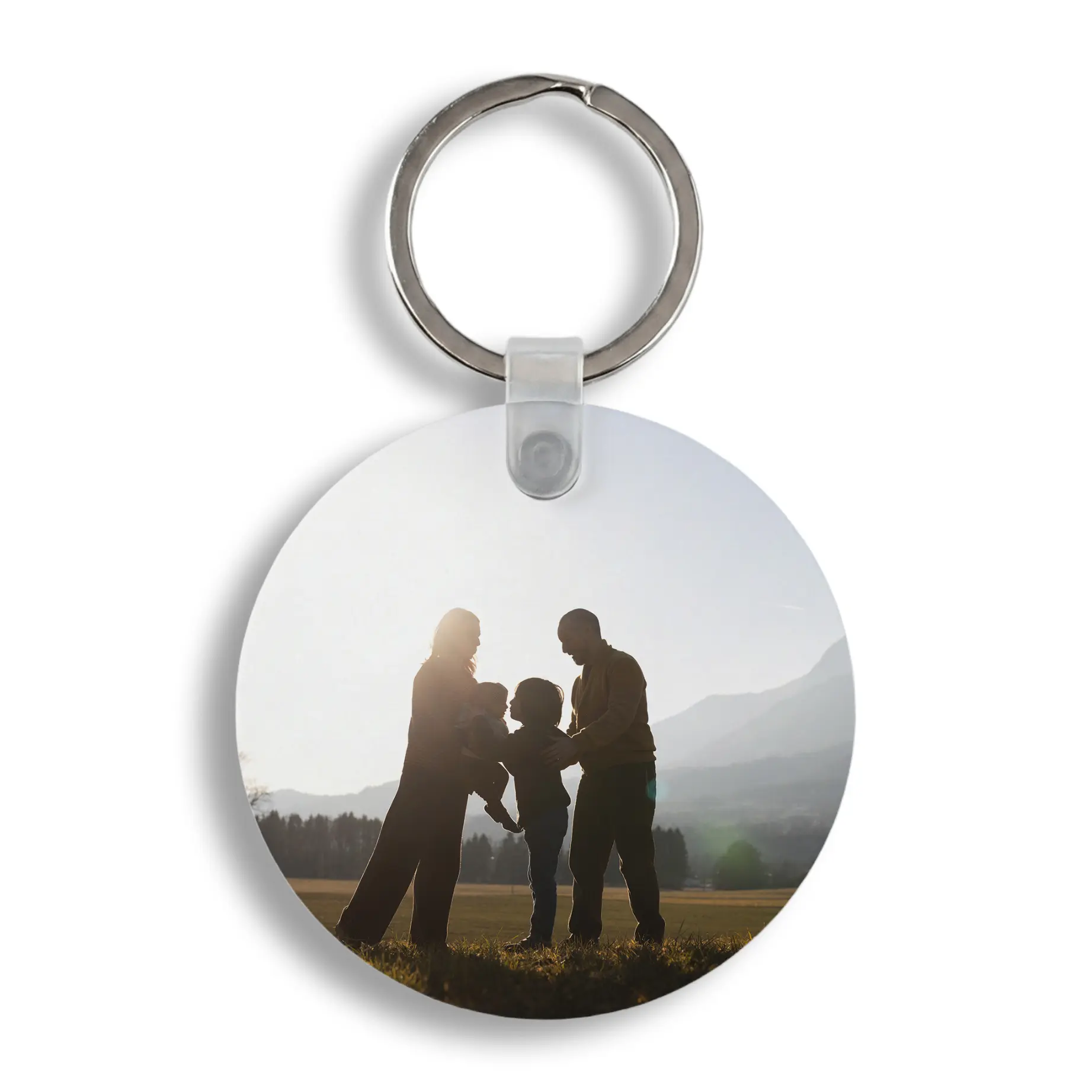 El llavero metal redondo personalizado es un detalle elegante y resistente, perfecto como recuerdo para eventos, promociones o regalos especiales. Su diseño clásico y su acabado en aluminio blanco brillo aportan un resultado limpio y llamativo.