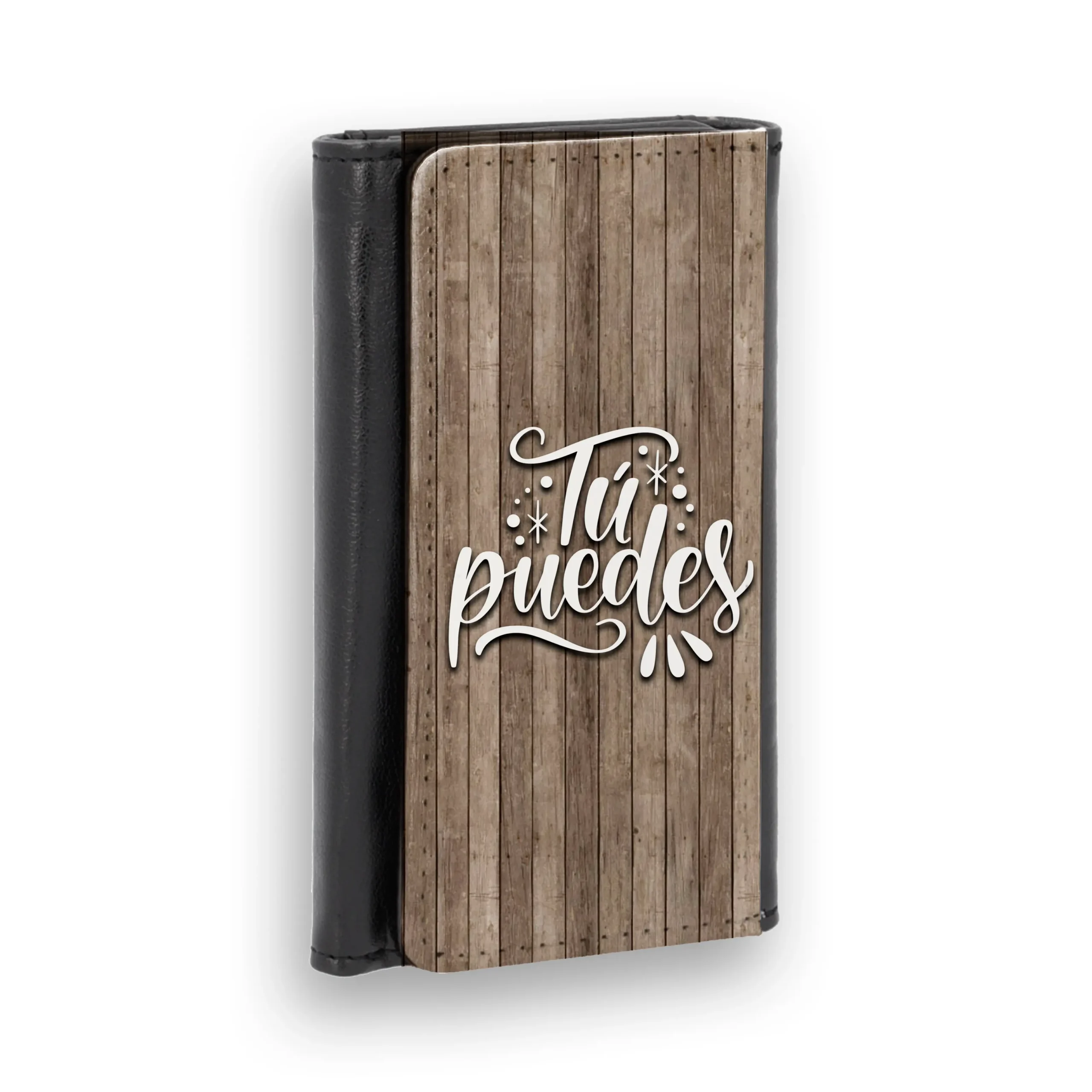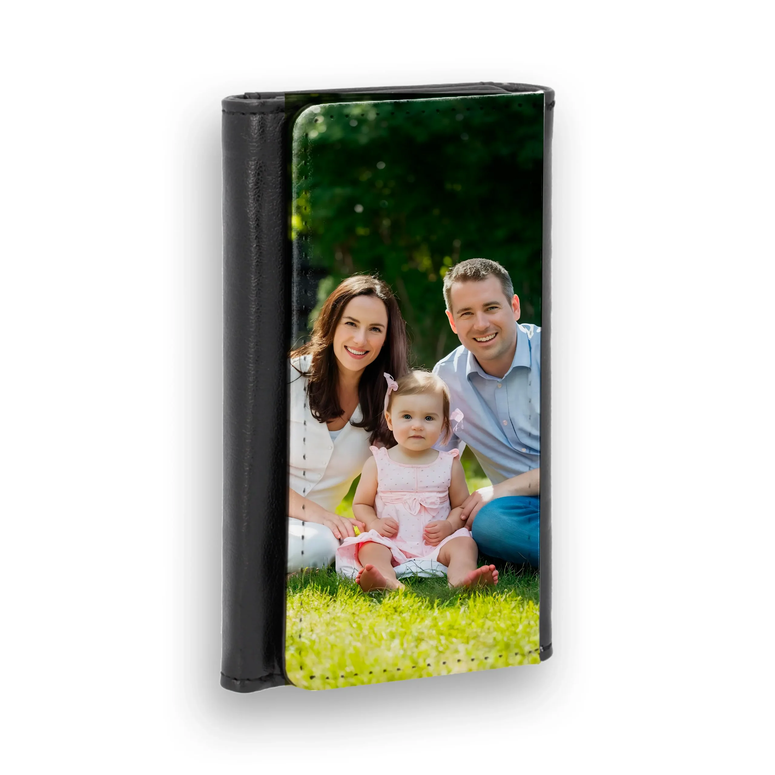 Fabricado en piel sintética negra con acabado brillante, cuenta con una solapa blanca personalizable (12 × 5,5 cm aprox.) donde podrás plasmar una foto, nombre, frase o cualquiera de nuestros diseños exclusivos.