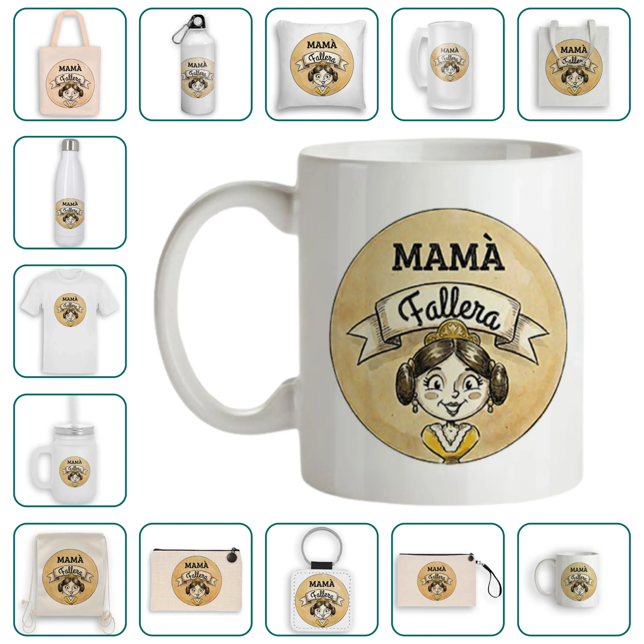 El diseño “Mamà fallera” es perfecto para sorprender a quien siempre tiene un abrazo preparado. Puedes aplicarlo al regalo que prefieras —una taza, un cojín, una bolsa o cualquiera de nuestros artículos— y crear un detalle lleno de emoción y cariño.