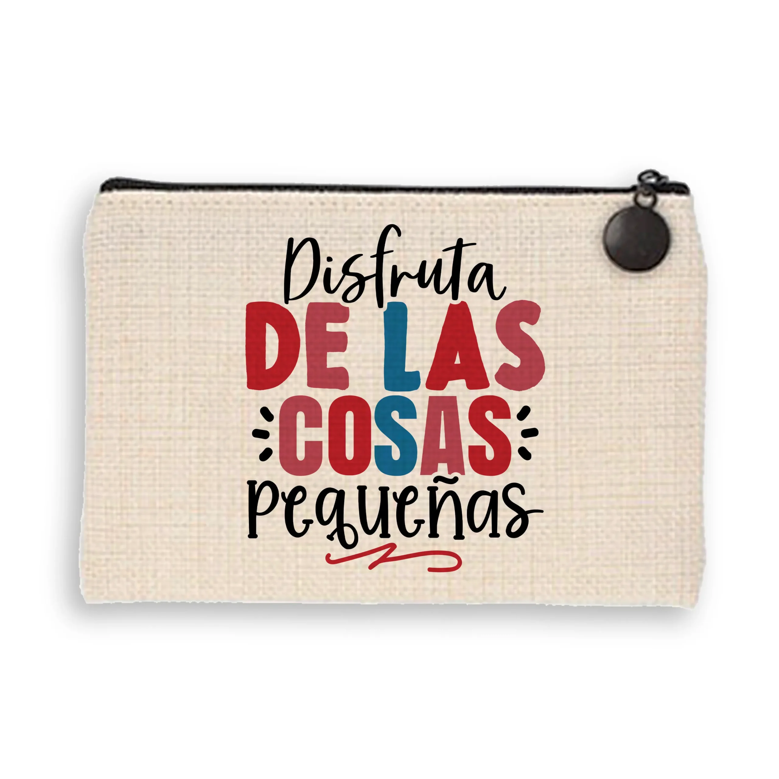 Un regalo práctico y con estilo. Monedero de tejido símil lino con cremallera negra, personalizable con tu diseño favorito en una cara (y la opción de personalizar también la otra). Ideal para regalar o llevar tus cosas con un toque personal. Recíbelo en 24 h con recogida en tienda (pedidos de lunes a jueves, excepto festivos o vacaciones) o en 48–72 h con envío a domicilio.