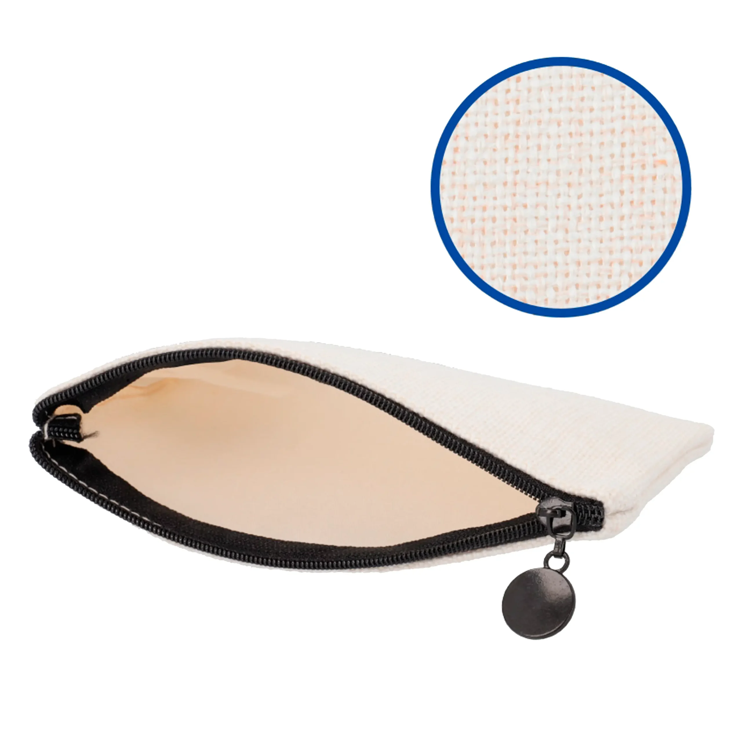 Este monedero personalizado de símil lino combina elegancia, funcionalidad y personalización. Fabricado en tejido tipo lino, resistente y con textura natural, cuenta con un cierre de cremallera negra que le da un toque moderno y garantiza un uso cómodo y seguro.