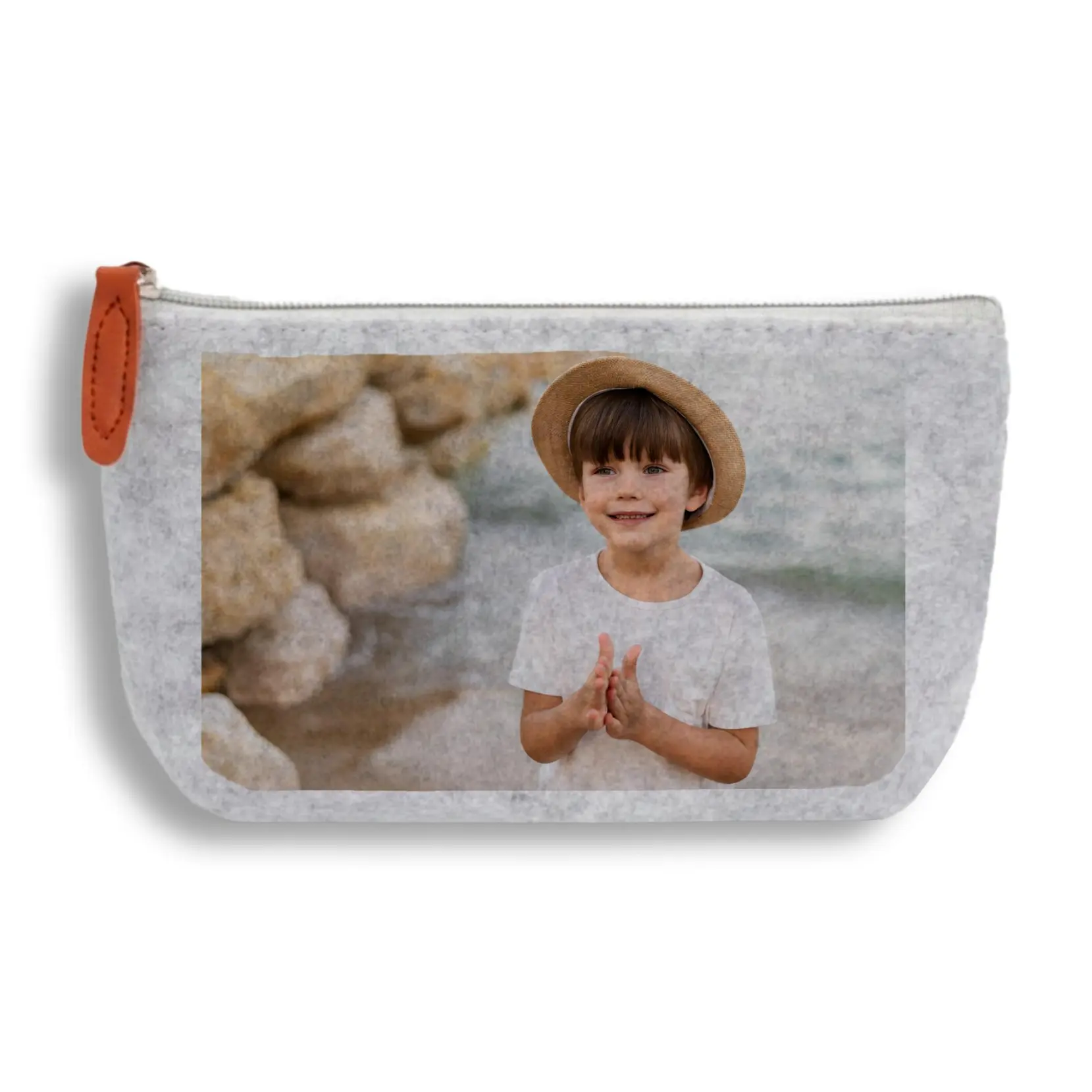 El neceser de fieltro personalizado en gris jaspeado claro es un complemento práctico y versátil, ideal para cosméticos, productos de aseo o como estuche escolar. Su diseño actual y su acabado cuidado lo convierten en una opción funcional para el día a día.