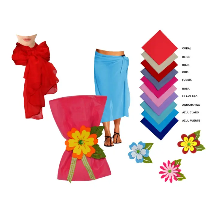 El Pañuelo pareo liso con flor de fieltro es un detalle elegante y versátil para eventos. Con medidas de 145 x 80 cm, incluye flor decorativa y se sirve en colores surtidos, tanto el pañuelo como la flor. Ideal para bodas y celebraciones especiales.