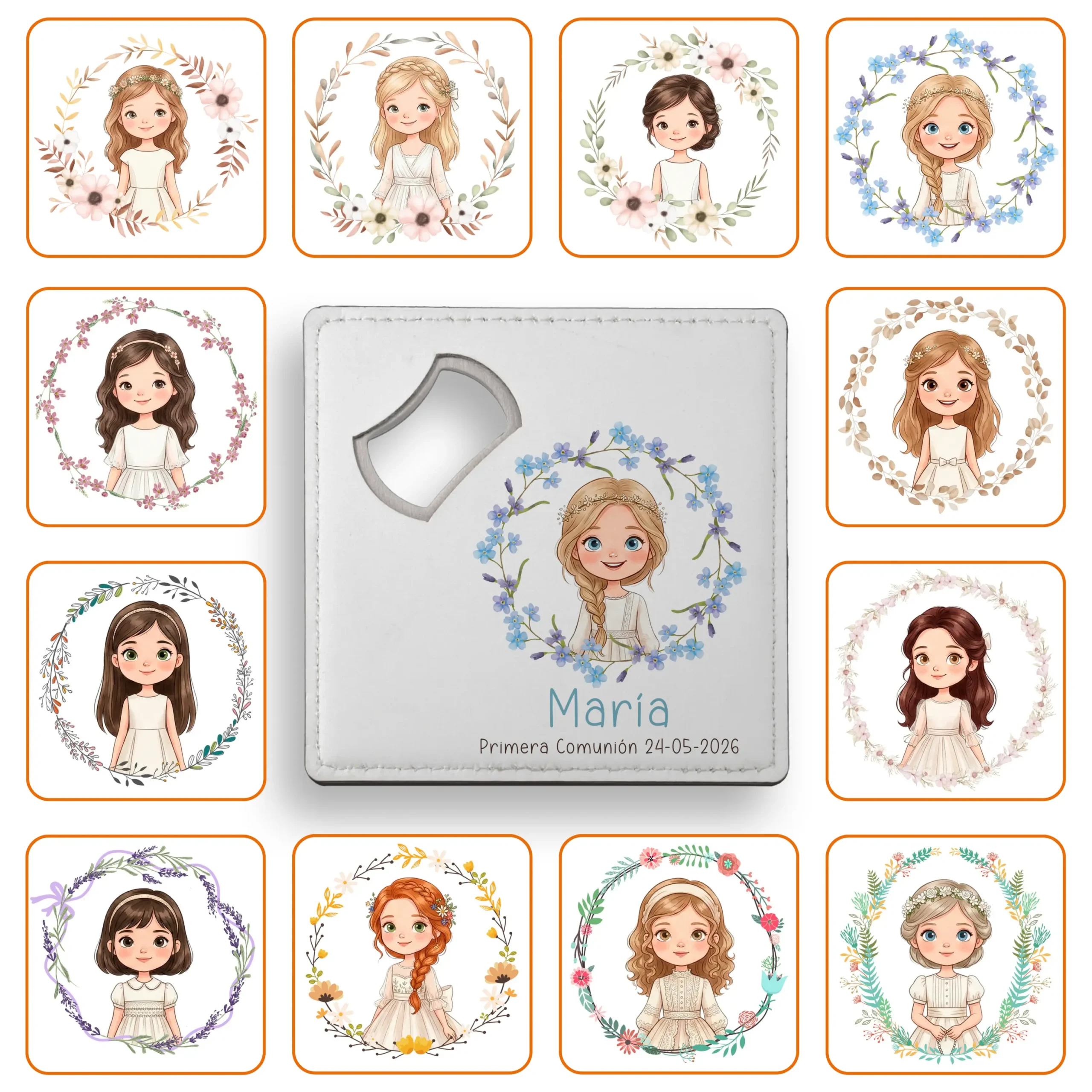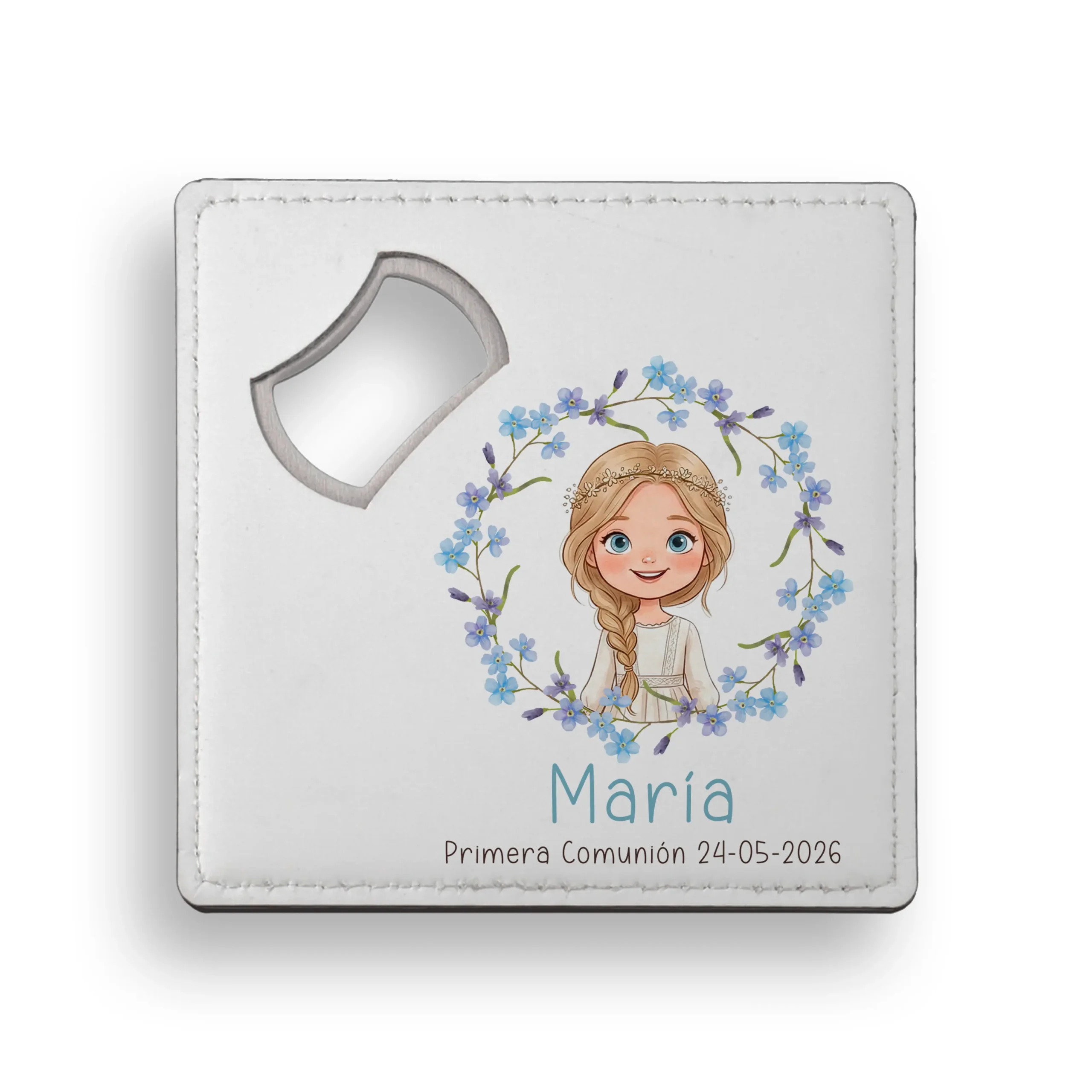 El posavasos con abridor personalizado incorpora abrebotellas integrado, convirtiéndolo en un accesorio funcional y útil para el día a día. Gracias a su material resistente y fácil de limpiar, es perfecto para utilizar en casa o como recuerdo especial de la celebración. Se entrega como producto terminado, listo para regalar.