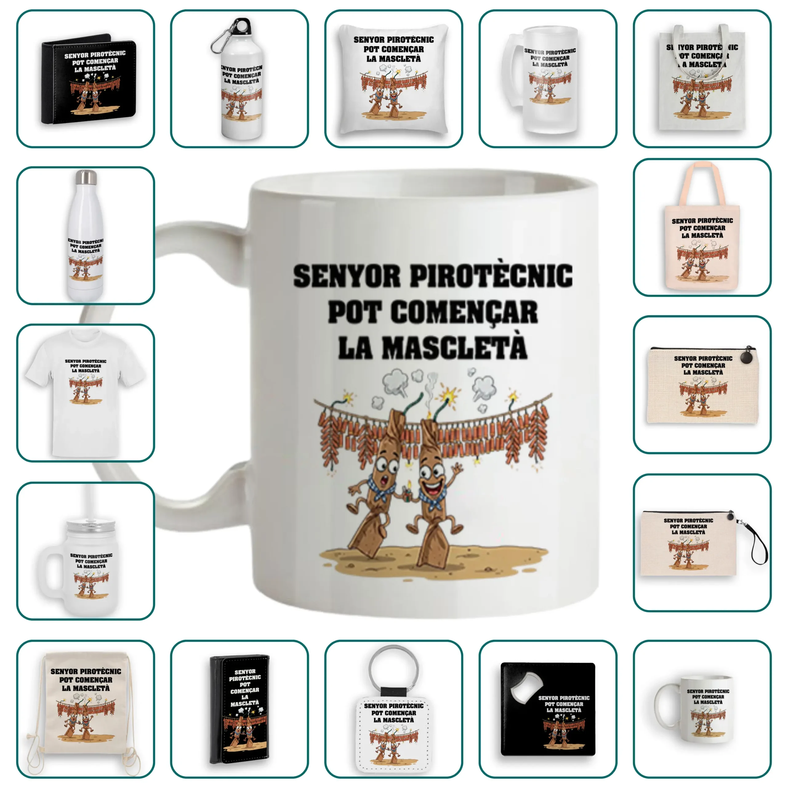 El diseño “Senyor pirotècnic pot començar la mascletà” es perfecto para sorprender a quien siempre tiene un abrazo preparado. Puedes aplicarlo al regalo que prefieras —una taza, un cojín, una bolsa o cualquiera de nuestros artículos— y crear un detalle lleno de emoción y cariño.