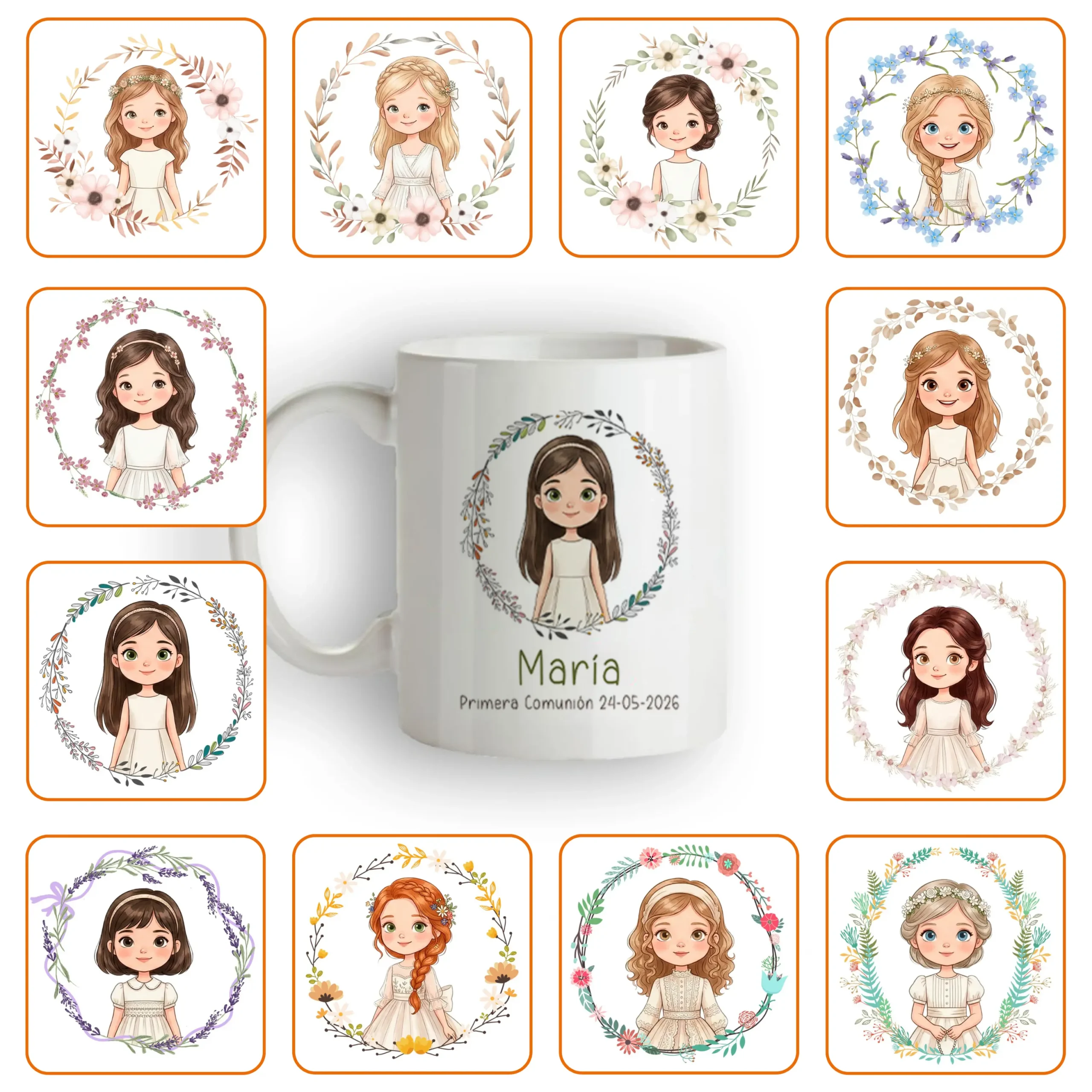 Taza Blanca personalizada para comunión de niña es un detalle bonito y especial, ideal como recuerdo para las invitadas en un día tan importante. Un obsequio útil que podrán utilizar a diario y conservar como recuerdo de la celebración.