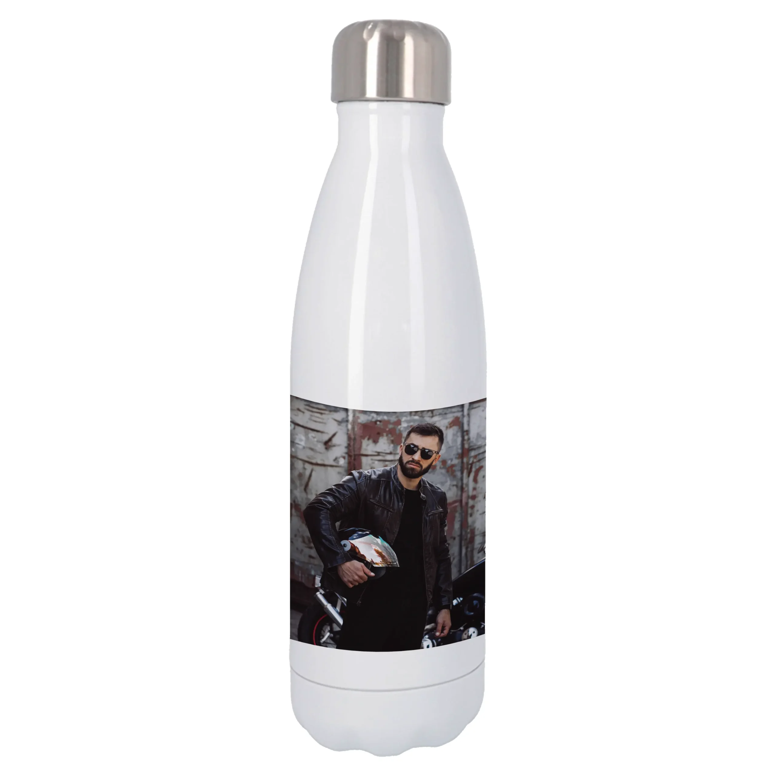 La botella termo de acero inoxidable personalizada combina diseño moderno, resistencia y funcionalidad.